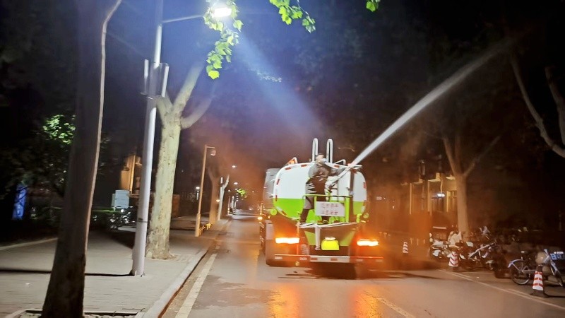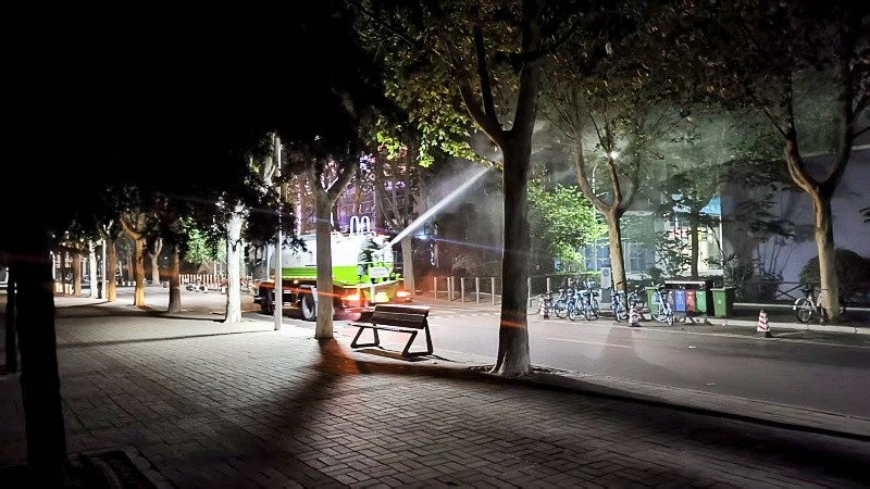 因受季节影响,郑州市已进入杨絮高发时段,校园内飞絮给师生出行带来困扰。为全面治理校园飞絮,保障师生健康安全,精品一区二区三区黄页网站加强日常洒水频次,最大程度减少飞絮对师生的影响;特别是飞絮高发时段,精品一区二区三区黄页网站先后于4月17日、4月19日晚22时,通过使用洒水车对校内道路两旁的树木进行全面高压冲淋。